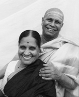 While Guruji was studying with Krishnamacharya, a young and strong-willed girl began to attend his yoga demonstrations at the Sanskrit University, accompanied by her father, a Sanskrit scholar. One day, after one of the demonstrations, Savitramma, who was only fourteen at the time, announced to her father, “I want that man in marriage.” Agreeably, her father approached the 18-year-old Guruji and invited him to their home in the village of Nanjangud, twenty kilometers away. Guruji respectably accepted. After learning more about the young yogi and his Brahmin and family background, Savitramma’s father agreed to the union, as did Guruji’s father despite the couple’s horoscope report of unsuitability. “Suitable or not, I want to marry him,” declared Savitramma, who later came to be affectionately known as Amma [mother]. They were married that year in a love match on the fourth day after the full moon of June 1933, Amma’s birthday.
