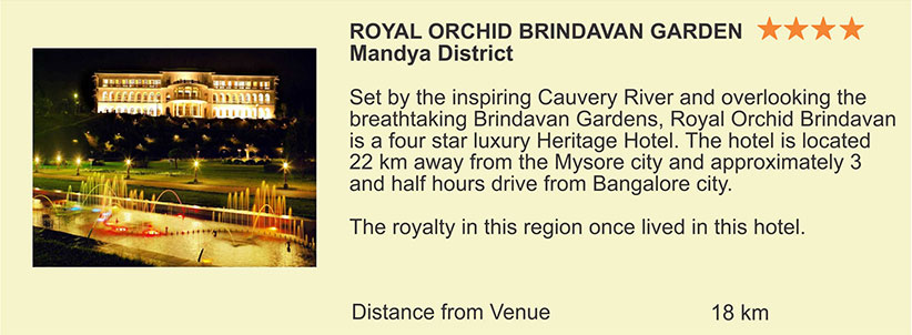 The closest airport to Mysore is Bengaluru International Airport. It is 40km (25miles) east of the city center, approximately a four-hour drive from Mysore.